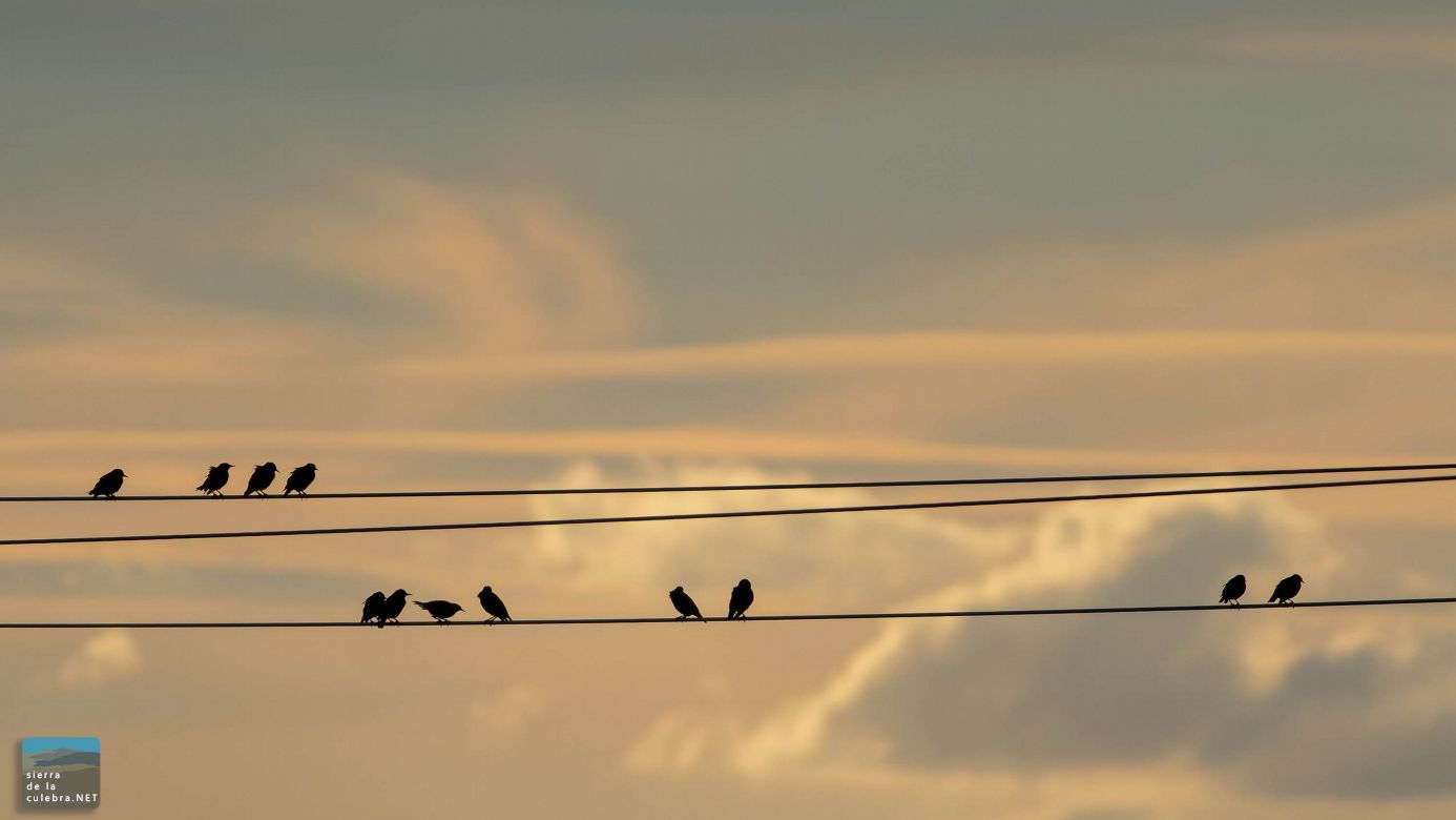 Los estorninos siempre en grandes manadas, impresionante el peso que aportan a los cables